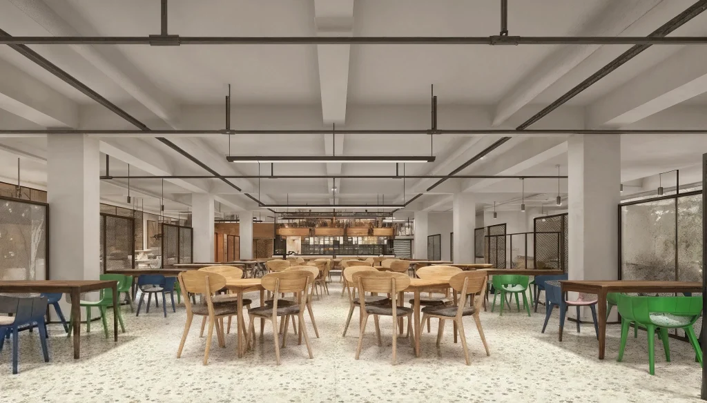 Restaurant contemporain à Shenzhen, conçu avec une atmosphère inspirée des marchés frais et une identité industrielle chaleureuse. L’espace alterne entre zones de restauration ouvertes, étals de produits frais et espaces enrichis de végétation, créant une ambiance à la fois vivante et accueillante. Le mobilier moderne, l’éclairage chaleureux et les matériaux naturels composent un ensemble équilibré entre fonctionnalité et style.